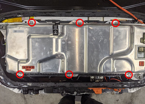 - 拆下高压电池前检修板。请参阅盖板 - 前维修孔 - 高压电池(拆卸和安装)。