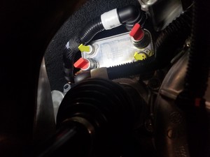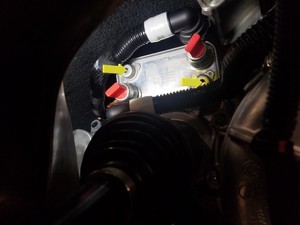 安装将逆变器至冷油器软管固定到后驱动单元 (RDU) 热交换器的卡子。