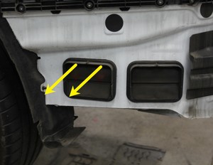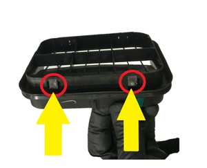 - 将左侧后部的抽气机放置到车身上,然后安装将抽气机固定在车辆上的锁片(4 个)。