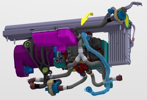 - 将吸收性材料放置在前驱动单元顶部和超级歧管后部冷却液软管下方。