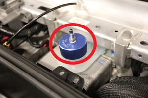 - 将真空重新加注软管从冷却液罐上的重新加注盖上拆下。
