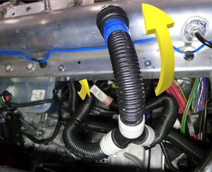 将温控棒电池回路软管置于超级歧管和前驱动单元之间。