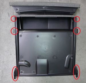 注完成后,点击左上角的 “X” 关闭窗口;确认冷却液状态为绿色的 “Ready for Fill/Drain” 状态;“Thermal Fill Drain” 例行程序的时间限制为 5 小时,5 小时后膨胀阀将关闭,必须重新执行此例行程序。 - 拆卸前备箱储物单元。请参阅 。