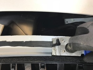 - 使用刮刀清除玻璃上的聚氨酯胶条并拆下挡风玻璃密封条。