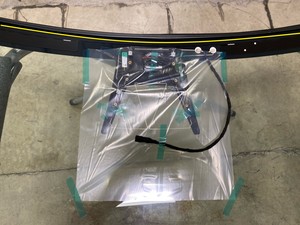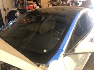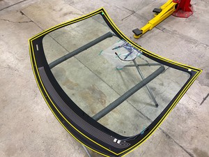 - 聚氨酯凝固期间,使用胶带将挡风玻璃固定到车身。