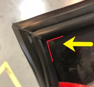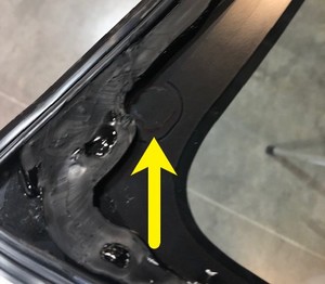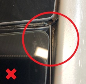 注沿着玻璃顶角处的挡风玻璃对齐标记对齐。一边贴密封条,一边从一角开始慢慢拨开胶带,确保稳妥贴合。
