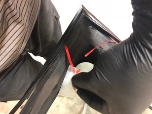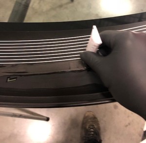 - 聚氨酯完全凝固后,揭下固定挡风玻璃的胶带。