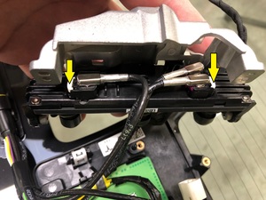 拆卸将安装板固定到挡风玻璃上的螺钉(4 个),使摄像头垂挂在线束上。