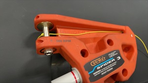 注按照十字线工具的说明,将电线穿过切割工具的开口并打结,以固定到位;如果未按正确方向转动主轴,将会损坏切割工具