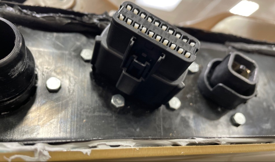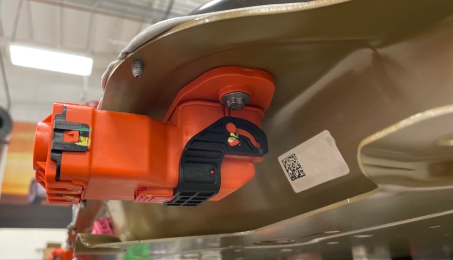 小心地将 Gore 通风阀(4 个)安装到高压电池组后部的通气总成上。