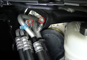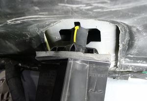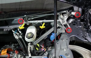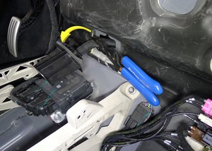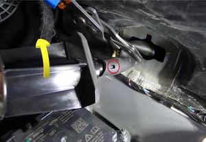 通过左侧减震塔盖板固定清洗器软管喷嘴
