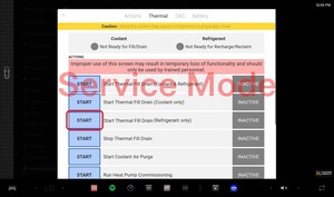 注如果在进入“Thermal Drain/Fill” 模式后,此例行程序未运行,空调压缩机的运行将被阻止;待弹出 “TEST-SELF_VCFRONT_X_HEAT-PUMP-COMMISSIONINGvia Toolbox: (link)via Service Mode: Thermal ➜ Refrigerant System ➜ Run Heat Pump Commissioningvia Service Mode Plus: Drive Inverter ➜ Front Drive Inverter Replacement ➜ Heatpump commissioning SUCCESS” 窗口后,点击左上角的 “X” 关闭窗口