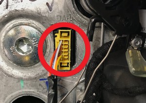 注1 个连接器;将新的橙色固定卡子安装到连接器上,然后安装转向柱控制模块 (SCCM) 连接器;执行推拉推测试,确保连接器稳妥固定