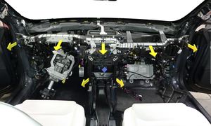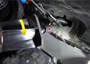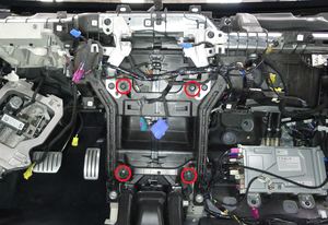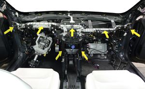 注3 个螺钉,T20,3 Nm,8 个锁片;剩余螺钉位于总成底部;松开总成,并小心地将其引导到上部转向柱上