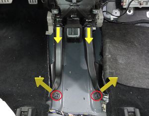 注2 个螺钉,T20,1.5 Nm,1 个卡子,1 个固定销;向前滑动下部护罩以接合固定销