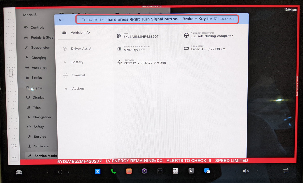 - 将车辆设置为“Service Mode”。请参阅 维护模式(启用和禁用)。