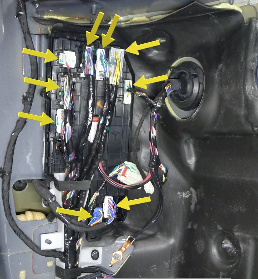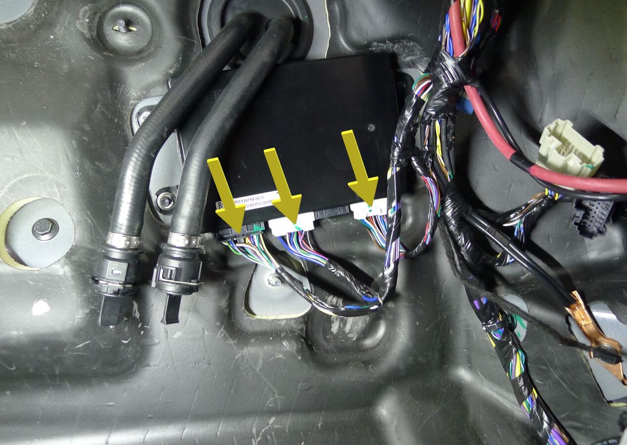 注11 个连接器,2 个夹子。拆卸前先松开连接器上的锁。松开右侧车辆控制器的夹式连接器。