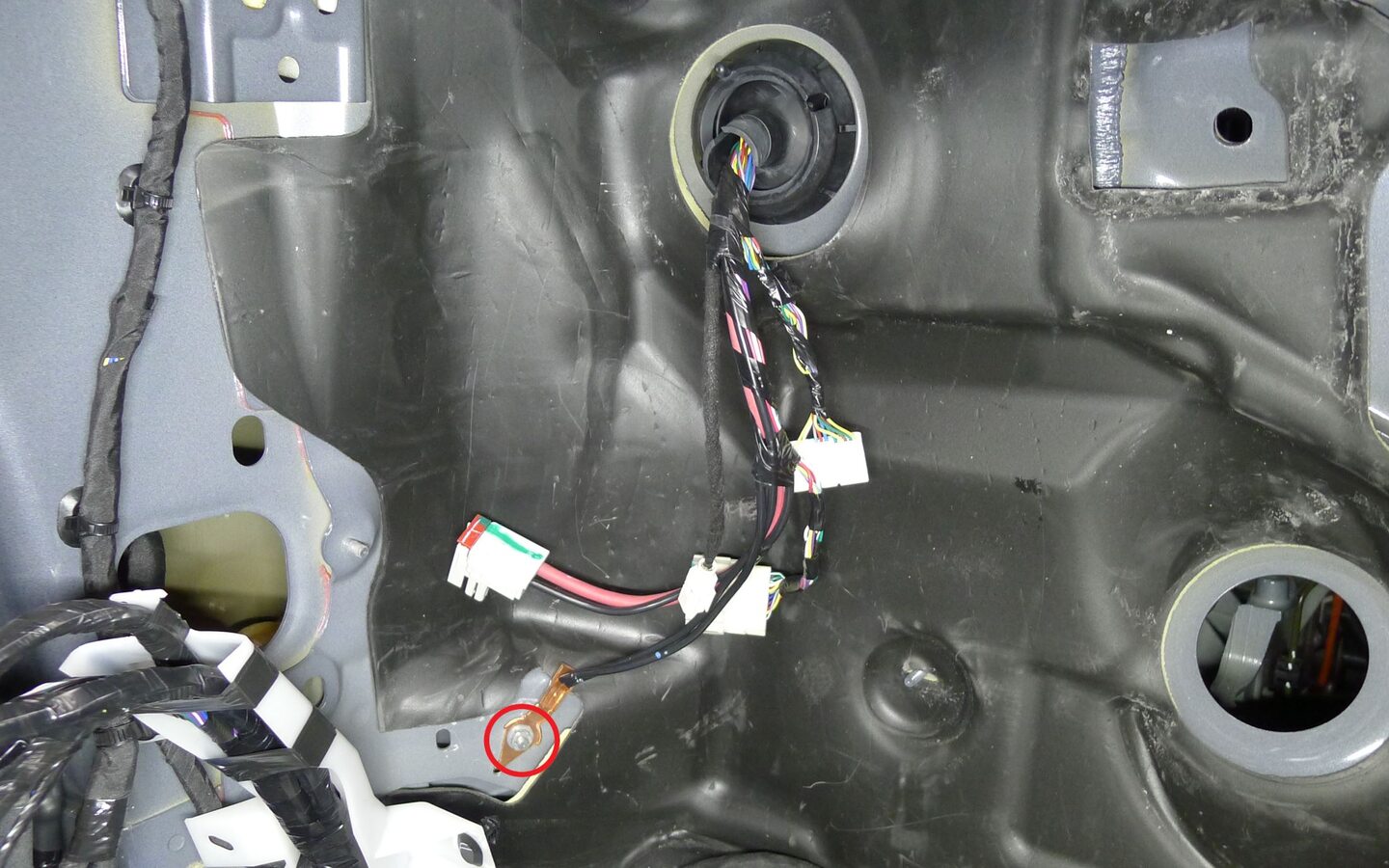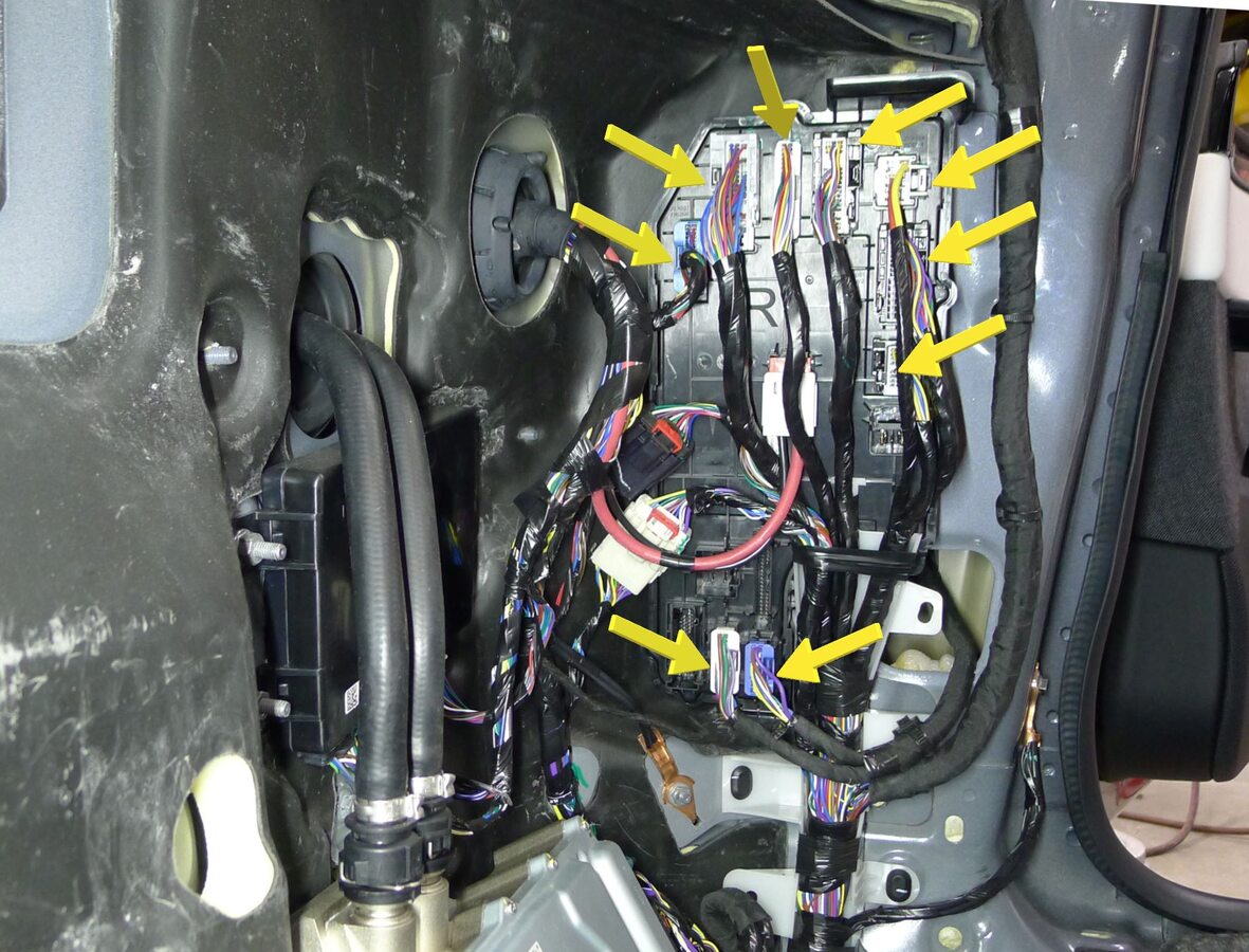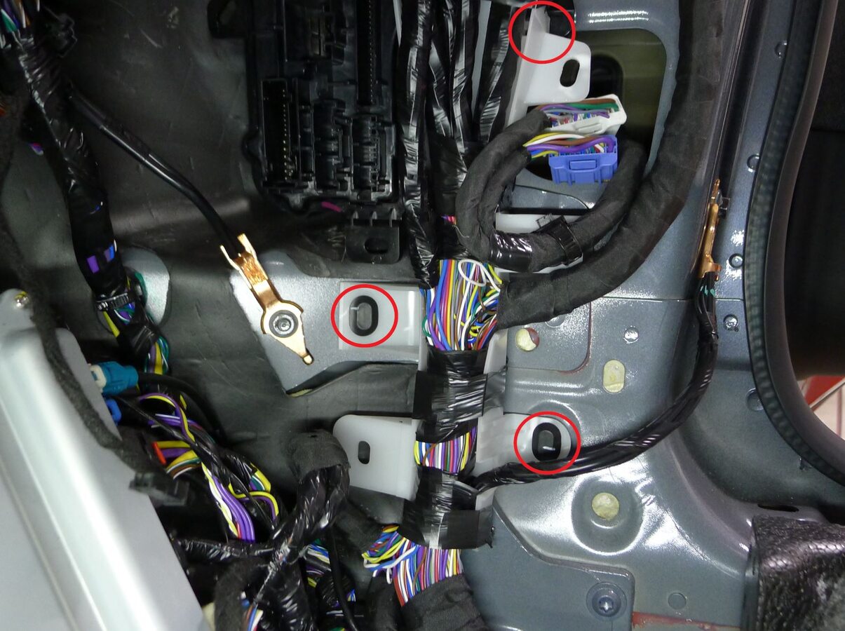 将前端模块 (FEM) 和 RH 车身线束固定到右侧车身控制器上。
