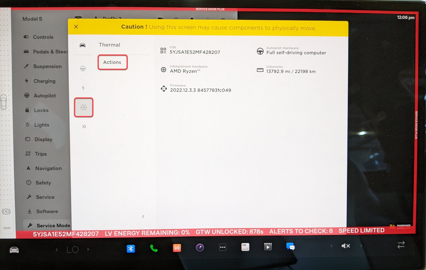 - 在车辆触摸屏上运行“测试热性能”:维护模式 > 温度 > 操作 > 测试 > 测试热性能,等待例程完成。如果例程失败,请参阅 Toolbox 文章 206000。