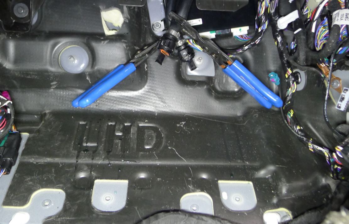 固定车载电脑游戏面板 LH 侧的仪表板线束连接器。