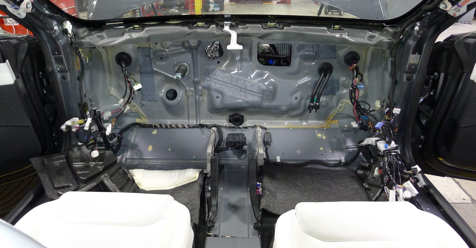 将前围板绝缘体装入车辆,然后固定前围板绝缘体的中央。