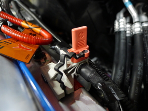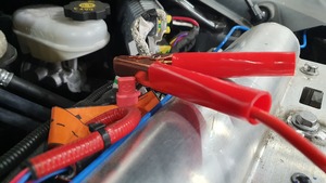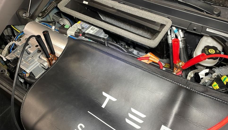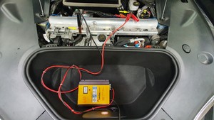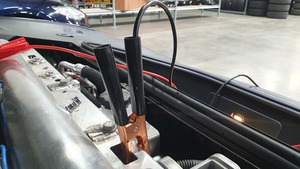 - 从跨接接线柱上拆下低压维护器的红色正极卡子。