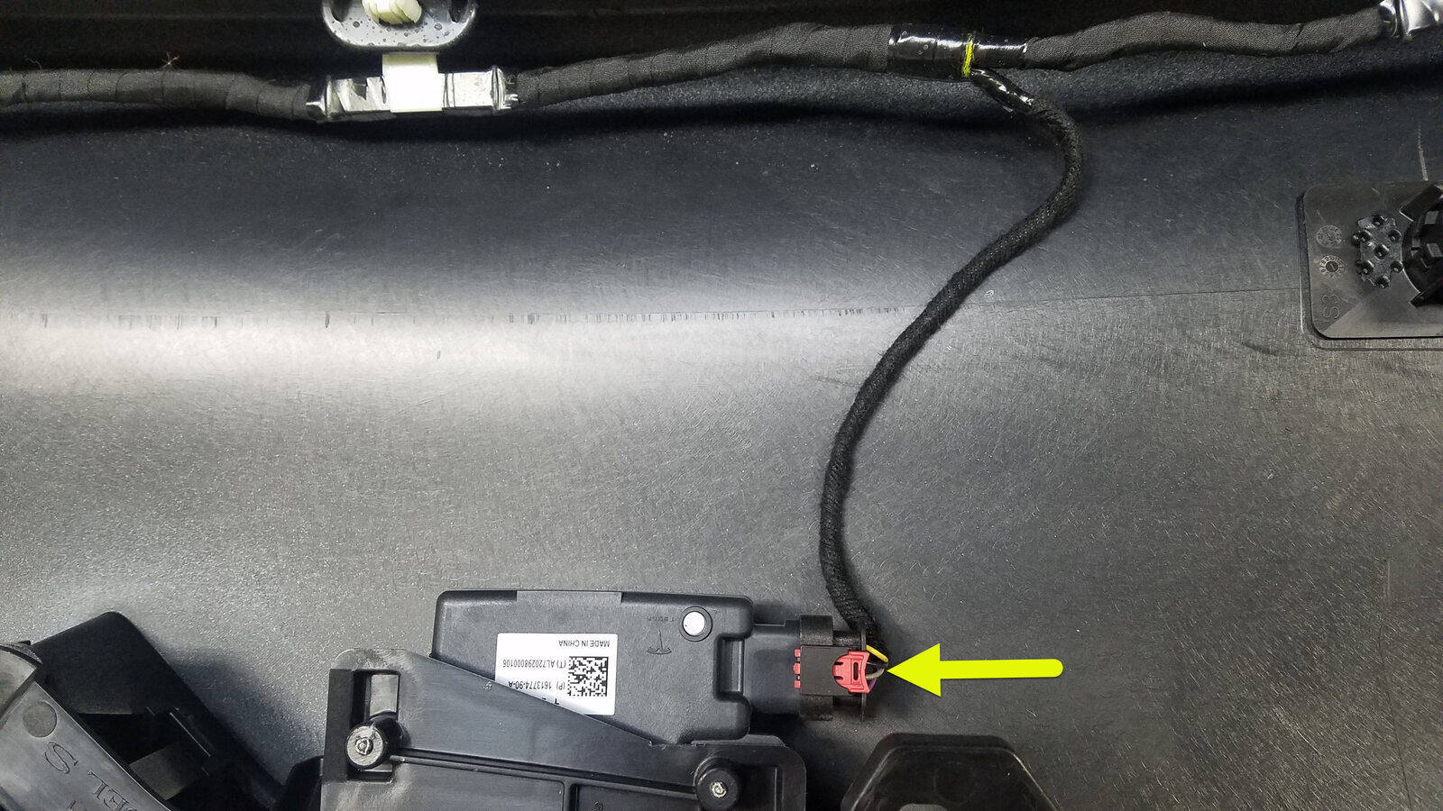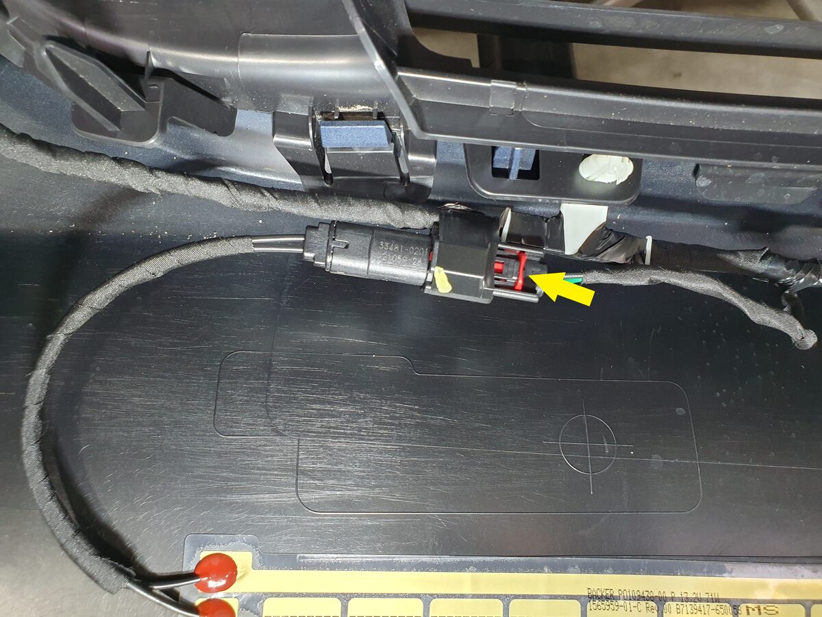 注Pull the red tab to disengage the lock, and then disconnect the radar heater electrical connector.