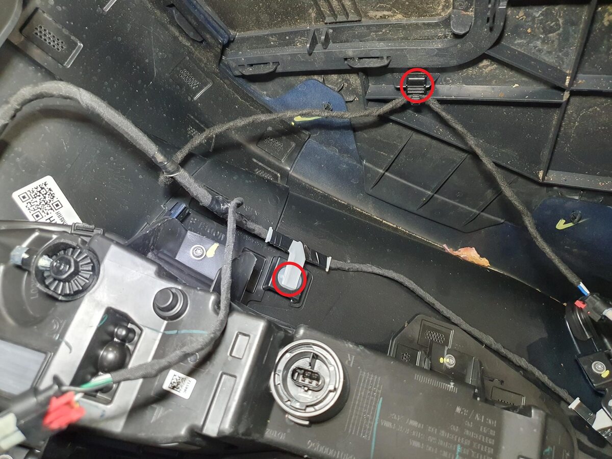 - Release the clips (x10) that attach the electrical harness to the front fascia assembly, and then remove the electrical harness from the fascia.