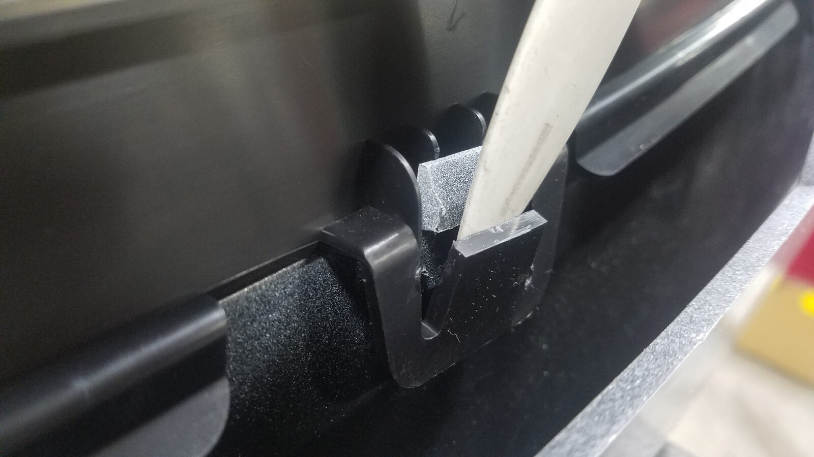 注Squeeze the retaining tabs together and gently remove the jumper wires from the tow hook cover.