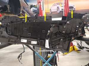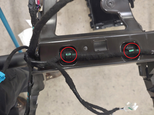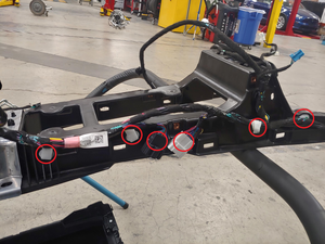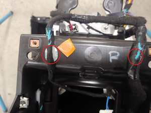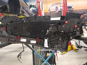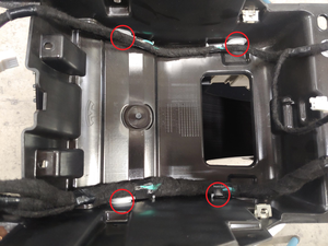 - 将中控台线束放入中控台框架,然后紧固将线束固定到中控台的卡子(14 个)。