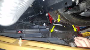 - 拆下将右侧轮罩内衬固定到前饰板的卡子(3 个)。