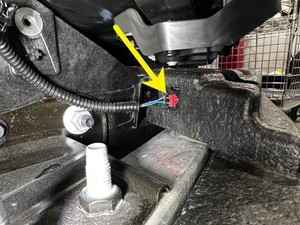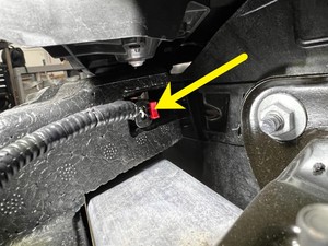 注2 个连接器;拉动红色锁片使锁脱离,然后将其断开;位于右侧轮拱内衬后方
