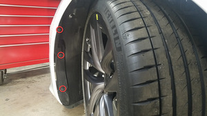 拆下将左前轮拱内衬固定到饰板的推拉式卡子,并将其移至一旁以便操作