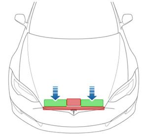 注用力按压绿色高亮区域(请参阅图片);前备箱盖其他区域受压可能受损
