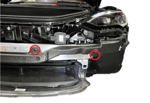注建议请助手帮忙;安装时布设饰板线束;进行下一步前,确认前饰板裙板位于前流线型护板下
