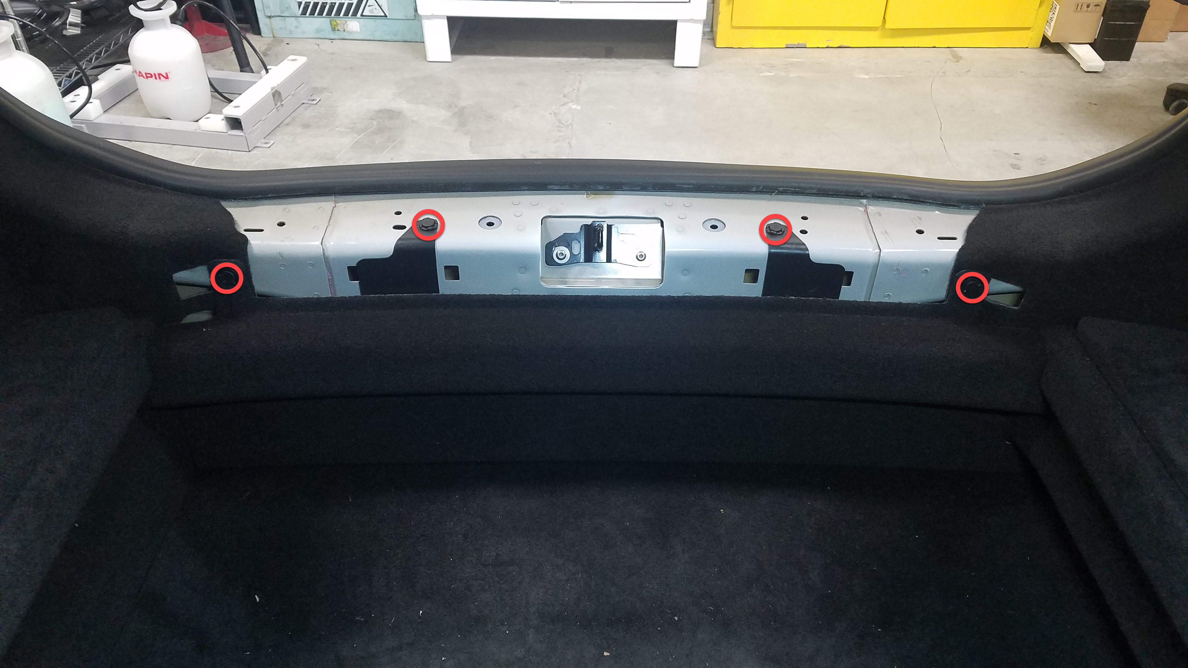 - 松开将后围板固定到车体的卡子(4 个),然后从车上拆下饰板。