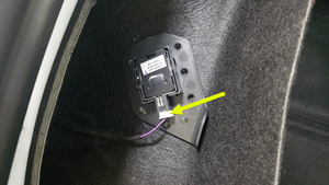 - 向后拉动后饰板总成以将其从车身松开,但不要从车体拆下,因为后饰板总成仍与一个电气连接器连接。