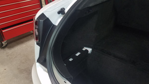 - 将左侧行李箱侧饰板向前推,然后固定侧围板后方的饰板。