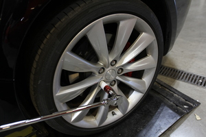 - 从车轮上拆下凸耳螺母(5 个),然后从轮毂上拆下车轮。