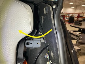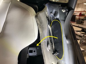 - 将第二排左侧座椅折叠至垂直,然后拆下座垫保护。