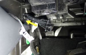 - 拆下副驾位脚部空间盖板。盖板 - 脚部空间 - 副驾位(拆卸和更换)。