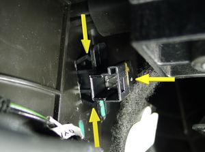 - 勾上锁片(6 个),将副驾位膝部气囊放置到仪表板上,然后将气囊固定到仪表板。