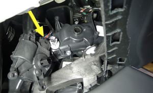 - 断开左侧脚部空间风管执行机构电气连接器,然后从车上拆下执行机构。