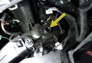 - 将左侧脚部空间风管执行机构放到车辆中,然后连接电气连接器。