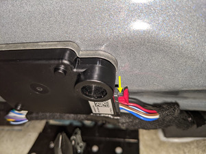 - 松开红色锁片,然后按下黑色锁片以断开内部雷达总成。