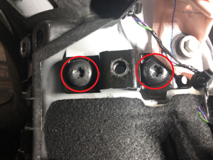安装将左侧帘式气囊固定到座椅安全带支架的螺栓。
