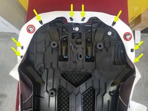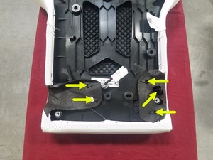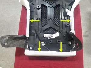 使用对角切割器切断将第二排左侧座椅套固定到第二排左侧座椅靠背泡沫的拱环(3 个)。