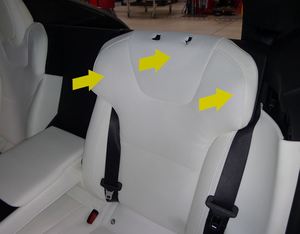 - 将第二排左侧座椅靠背套顶部向上拉并安装到第二排左侧座椅靠背基板上。