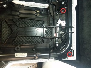 拆下将第二排左侧靠背垫固定到靠背框架的螺栓(2 个)。