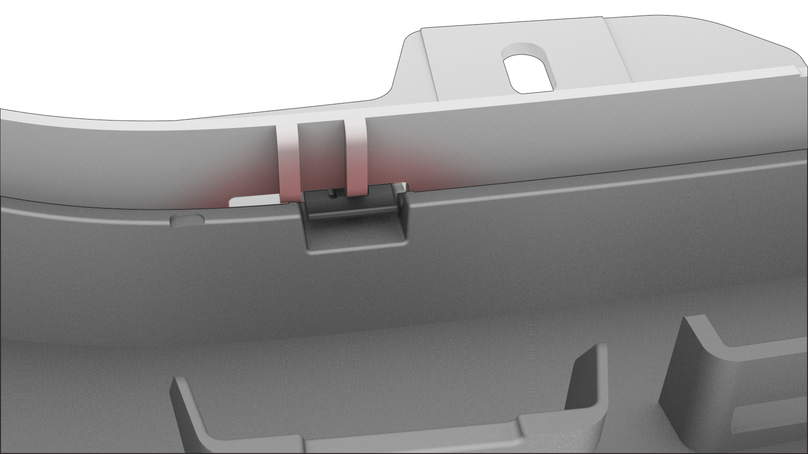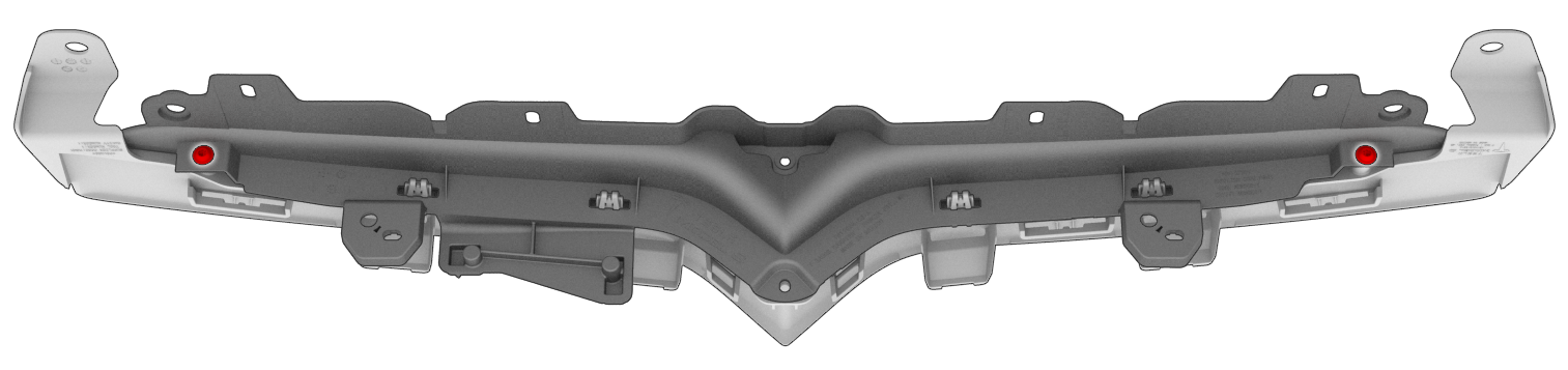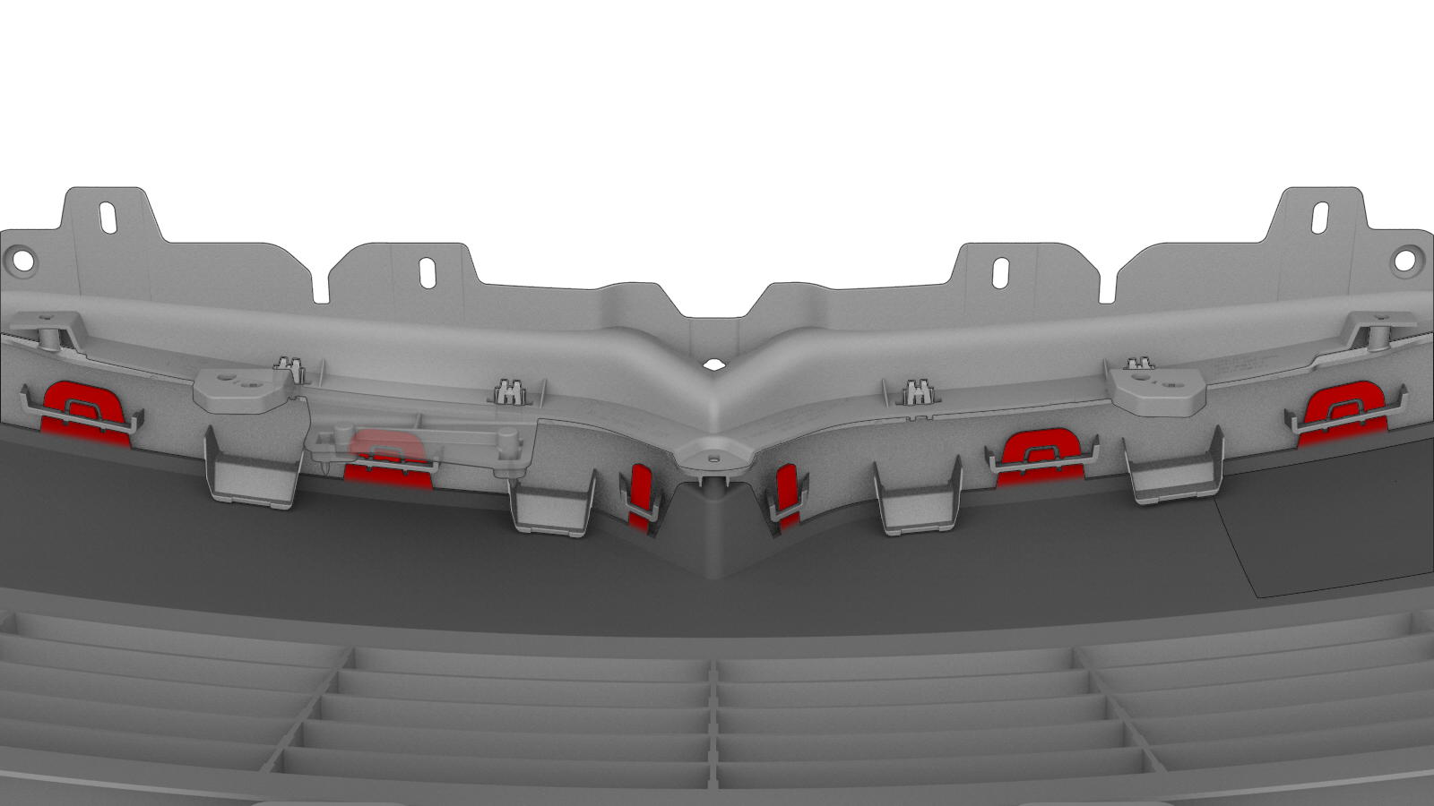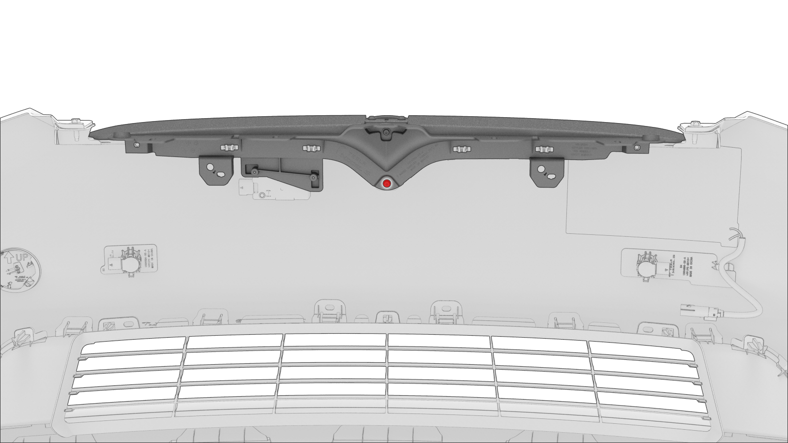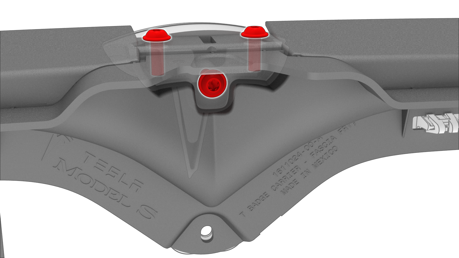 - Position the T badge support on the front fascia, and then install the clips and datums that attach the T badge support to the fascia.
